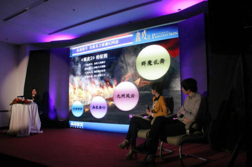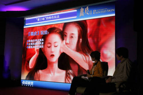 游戏具体细节方面,麒麟产品总监刘鹤女士通过“人·鬼·情”三大篇章进行了讲解。据介绍,《画皮2》玩法上区别于麒麟目前主打产品《成吉思汗》,将更加注重PVE玩法。“人”篇披露了整个游戏的剧情发展分为4个章节:天命所归、画皮画心、九州风云、群魔乱舞,通过“皮面具收集”这一核心玩法能够将游戏角色外观更改为妖怪造型。而在“鬼”篇中则披露游戏将电影的重口味“最大化”,游戏中白天与晚上的场景有所变化,同一场景白天显示的是人界,晚上则是妖界,NPC白天为人夜晚为鬼,更会出现电影中遭到删节的未披露剧情。
