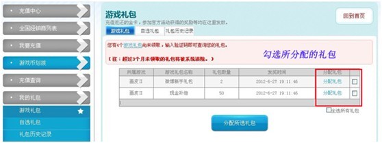 第三步:分配礼包,划拨到你的游戏角色所对应的《画皮2》大区