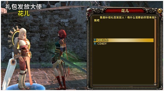 第四步:分配成功后,登录游戏,到【江都】礼包发放大使“花儿”(坐标:1540,1689)或【鬼城】礼包发放大使“礼锦”(坐标: 2044, 2993)处对话领取礼包即可。