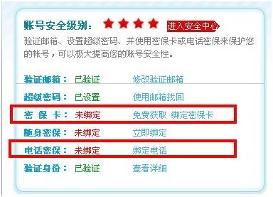 2,如上图所示,从账号中心进入密保卡免费获取页面;