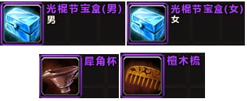 活动内容:在日常活动傀儡戏中,玩家将额外获得光棍节宝盒两个,其中男属性宝盒只能由男角色玩家开启,女属性宝盒只能由女角色玩家开启,开启光棍节宝盒(男)将获得犀角杯一个,开启光棍节宝盒(女)将获得檀木梳一个。玩家需要通过向异性交易的办法,获得檀木梳,集齐犀角杯以及檀木梳,可到光棍节活动NPC处领取高额奖励!
