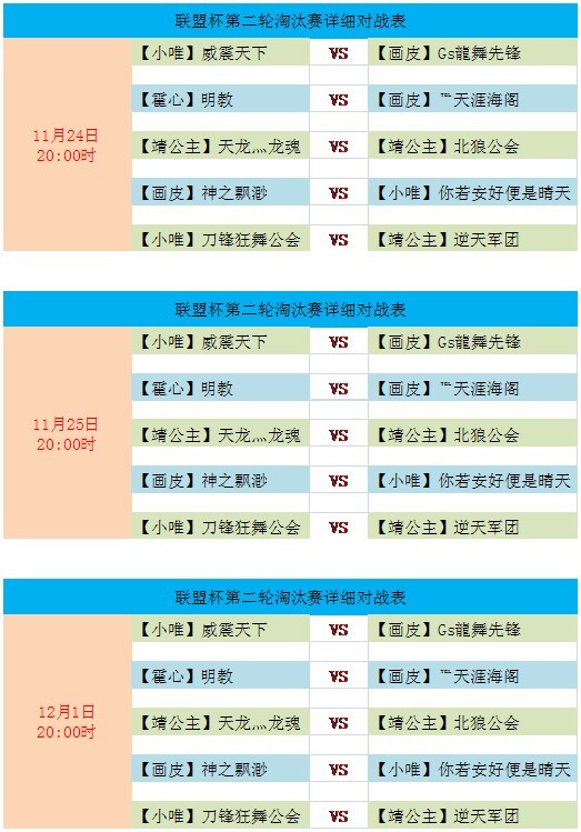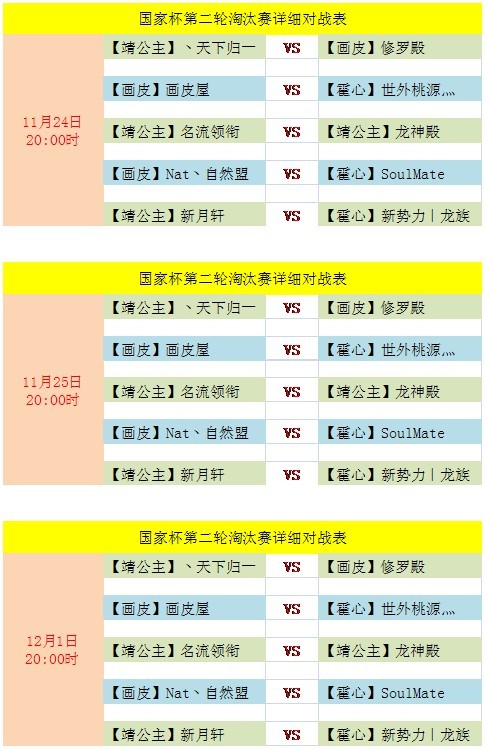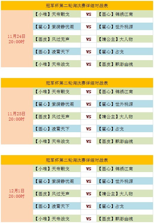 以下为第二轮淘汰赛各杯赛详细对战表: