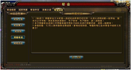 请各帮会成员通过以下方式进入跨服帮会战战场!