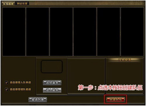 第一步:打开游戏左下角【组队界面】并选择“创建队伍”;