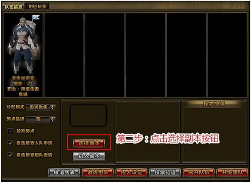 第二步:队伍创建成功后,点击【选择副本】按钮;