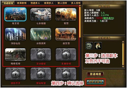 第五步:点击【进入副本】按钮,即可开始你的副本冒险!