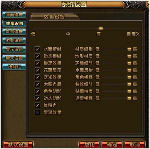 游戏里的系统设置,可以让玩家自主调节画面效果,声音效果等功能。