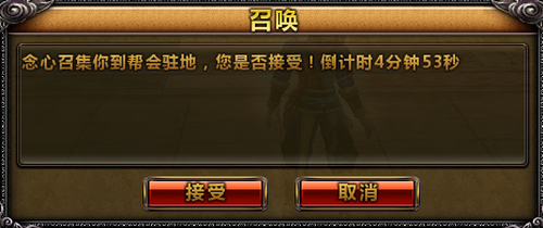 2,帮主召唤BOSS后,全帮所有在线成员弹出确认框界面:帮助召集你到帮会注定,您是否接受!倒计时X分钟X秒。