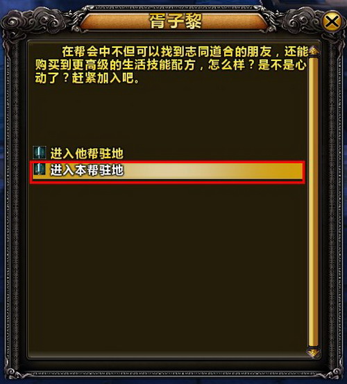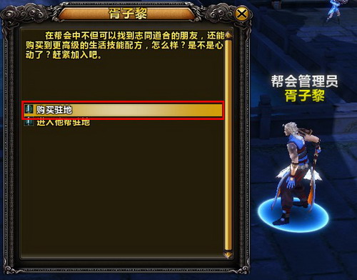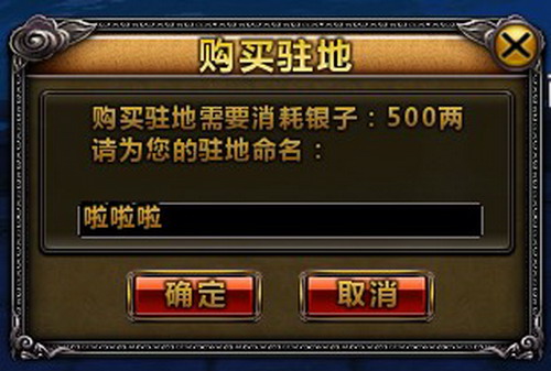 温馨提醒:购买帮会驻地需要花费银子500两。