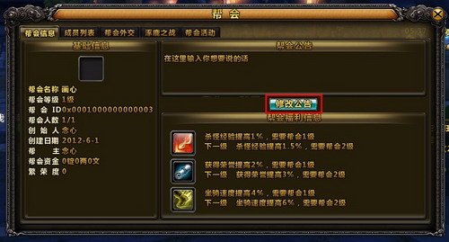帮会公告的修改: