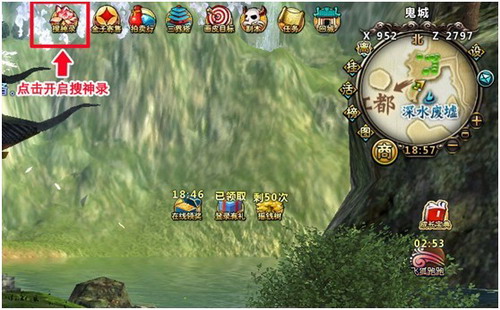 当玩家等级达到27级,即可在引导任务的指引下,开启“搜神录”玩法,此后在游戏主界面的上方图标中,玩家可以直接点击【搜神录】按钮来打开“搜神录”界面。