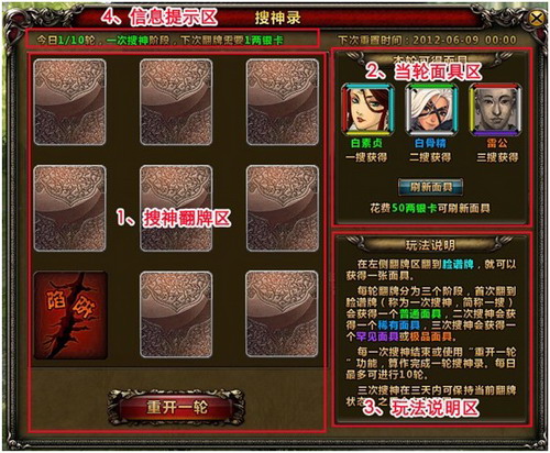 - 搜神翻牌区:在此区玩家进行每次搜神的翻牌操作