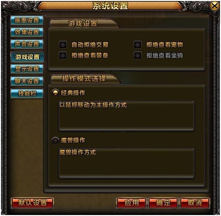 可以拒绝别人查看你的装备、宠物,拒绝与人交易