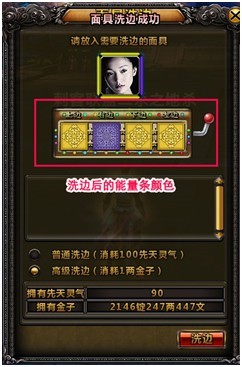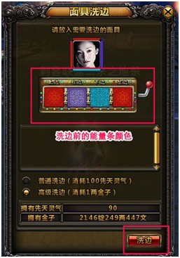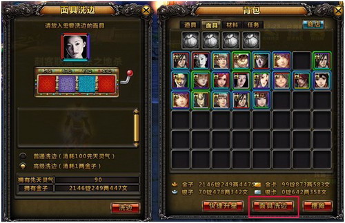 玩家点击面具包中的【面具洗边】按钮,弹出面具洗边面板: