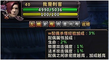能遇到自己心爱的人并结为夫妻自然是游戏里一键可遇而不可求的事,和对象一起在游戏里做任务,下副本的浪漫感觉自然不用多说,而且你还可以获得丰厚的经验加成,法术攻击和物理攻击也会大幅提升,配偶之间的亲密度越高,加成也越高。